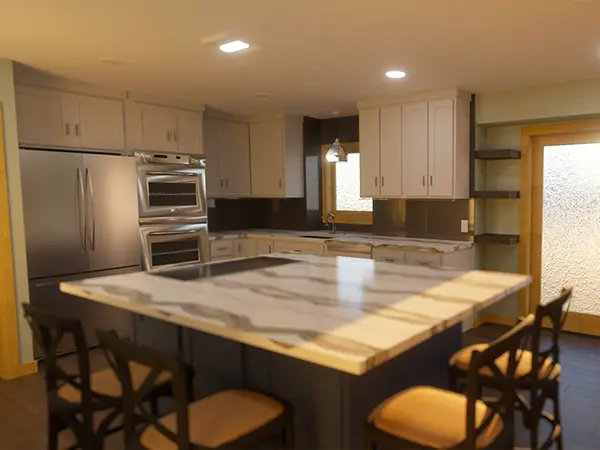 This kitchen is part of a largert basement remodel that included: